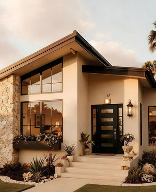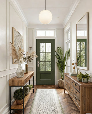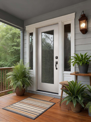 Five frosted-glass panels for soft daylighting, and solid privacy where it counts. A fresh, modern welcoming look for any entryway.